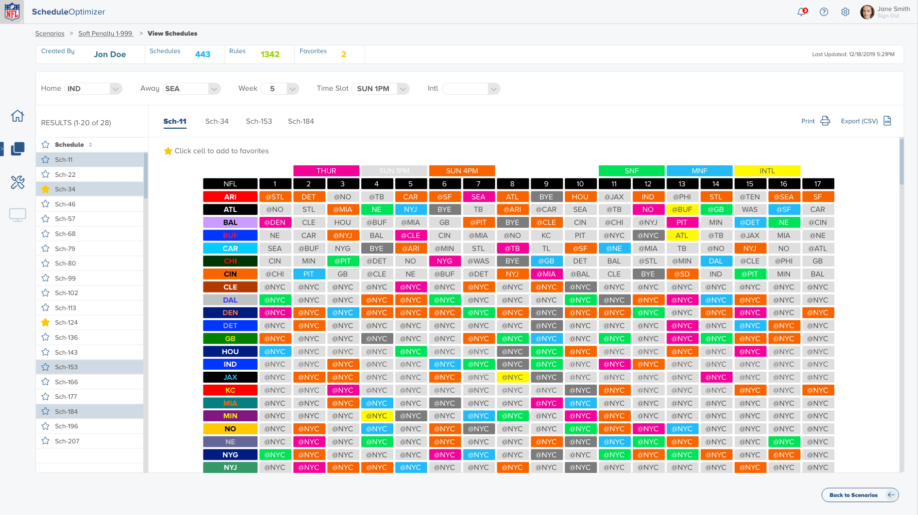 Amy lives in NYC. She is the lead scheduler for the NFL. She works with executives and third-party stakeholders to produce optimized schedules.